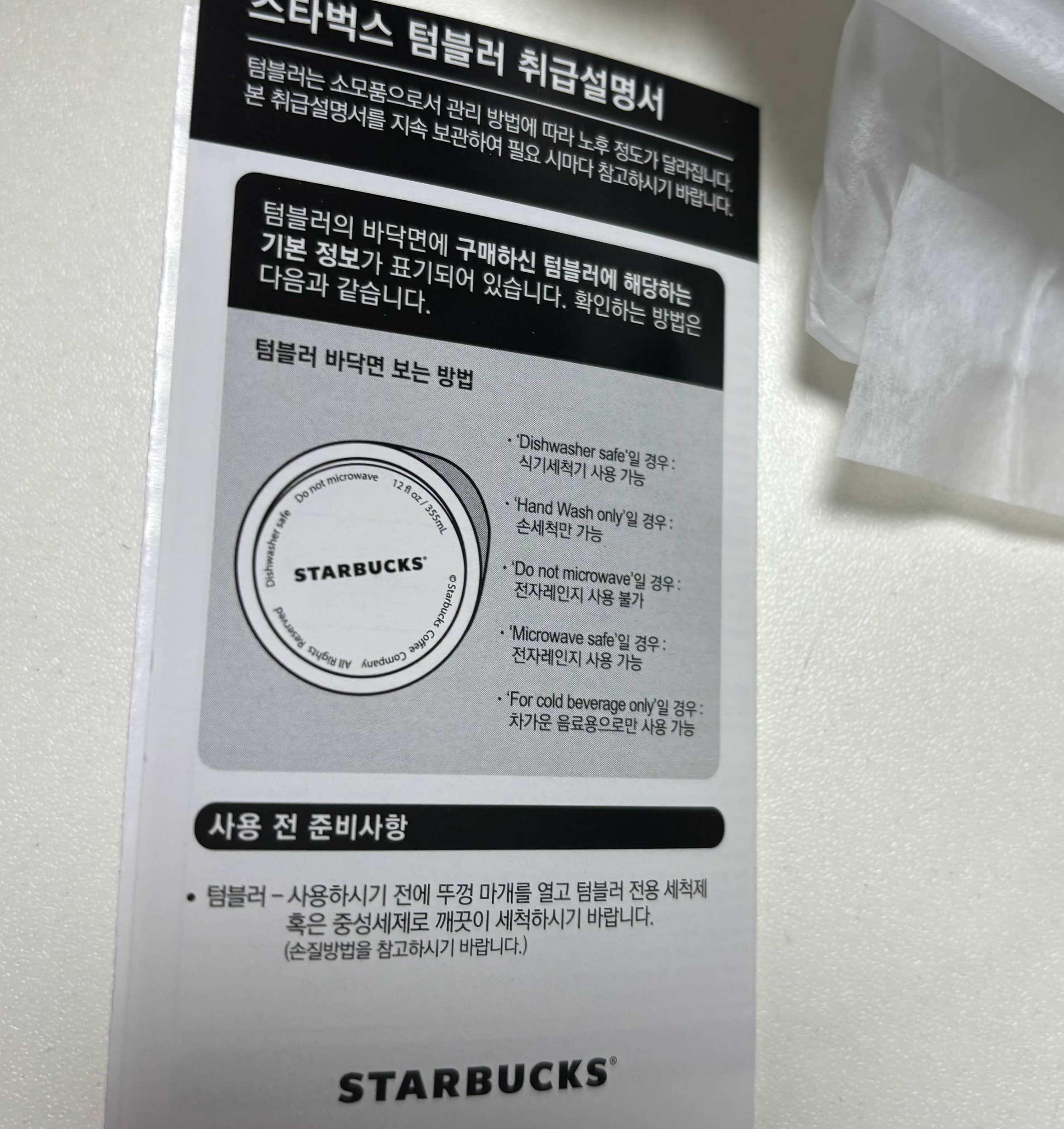 스타벅스 텀블러 하단부에 이렇게 전자레인지, 식기세척기 사용 가능 여부가 나와있는 거 아셨나요?